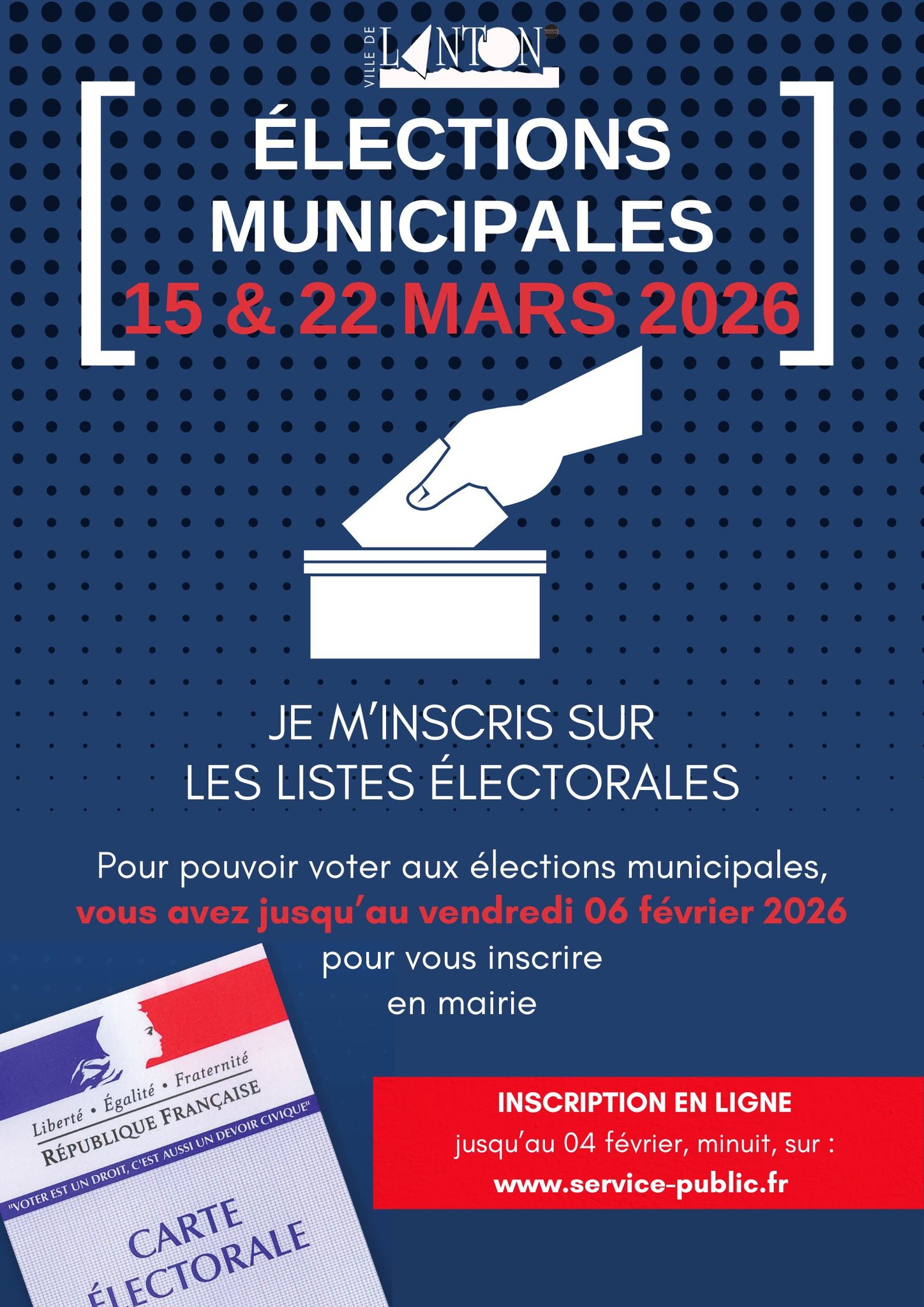 ÉLECTIONS MUNICIPALES – INSCRIPTION SUR LES LISTES ÉLECTORALES AVANT LE 6 FÉVRIER 2026