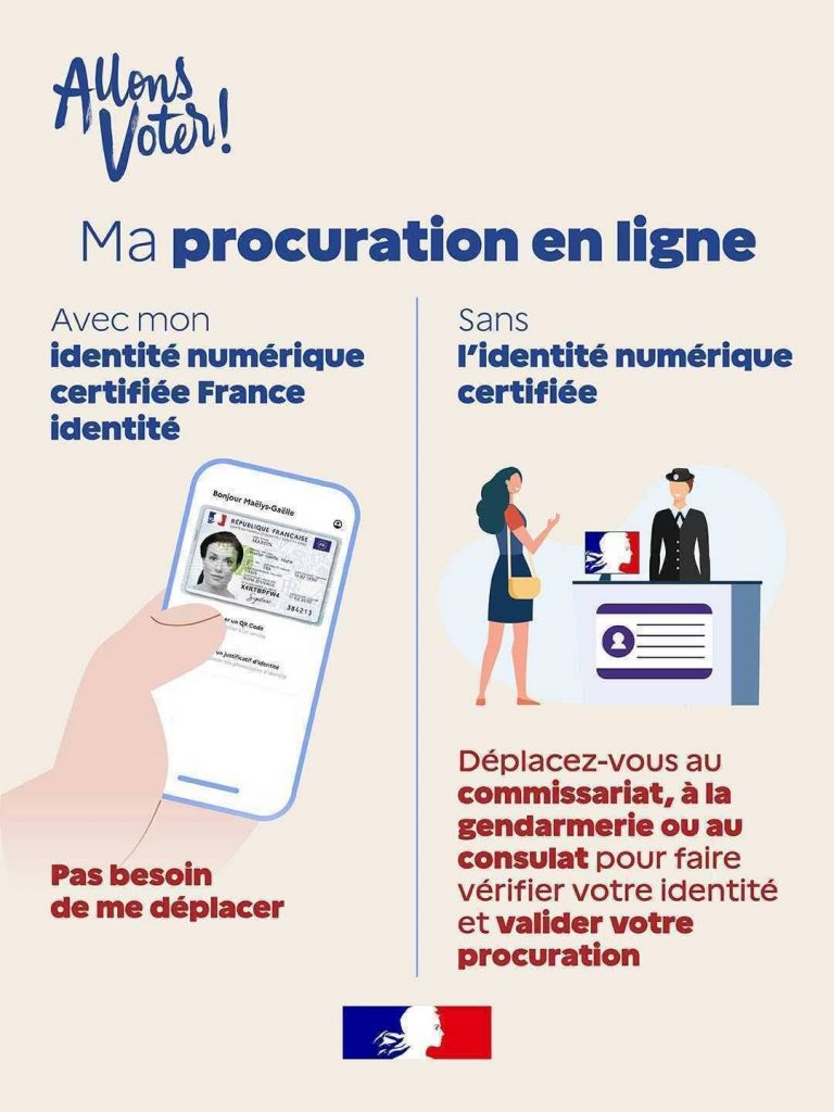 - Démarche en ligne avec validation sur place : imprimez et remplissez le formulaire en ligne via le site MaProcuration https://maprocuration.gouv.fr